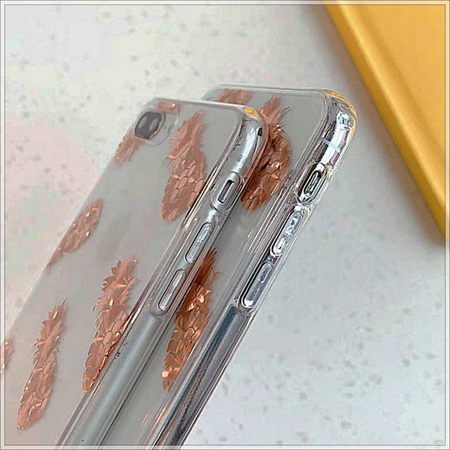 Funda personalizada para iphone xs, funda transparente con hoja dorada brillante para iphone 11 XS Max XR 8, funda trasera transparente para teléfono, piña brillante